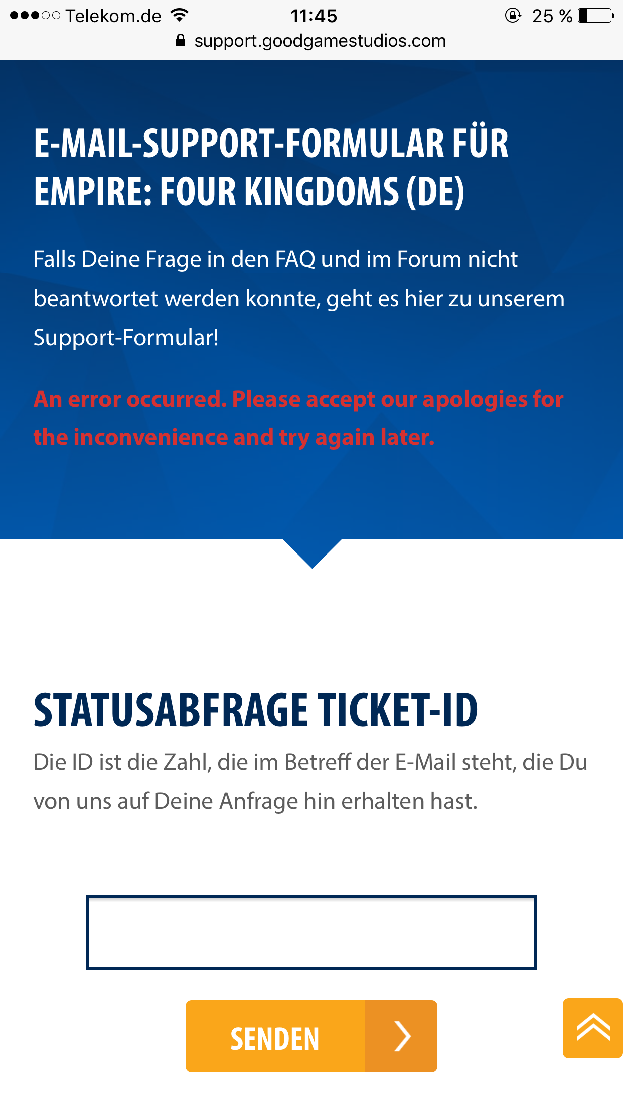 Ich hab Truppen und Wkz geschickt von 2 Burgen je ca. 1,4 Millonen Münzen und Beschleuniger zum schnellen senden. Nun den Support angeschrieben, zig Felder ausgefüllt, abgeschickt und dann kommt der Mist!! Hab keine Lust das ganze nochmal zu schreiben. Bin stocksauer.