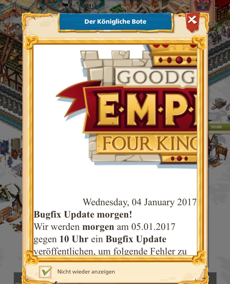 wir haben den Fehler gefunden und bereits gefixt. Der Königliche Bote sollte nun auch auf den oben erwähnten Geräten wieder korrekt dargestellt werden.