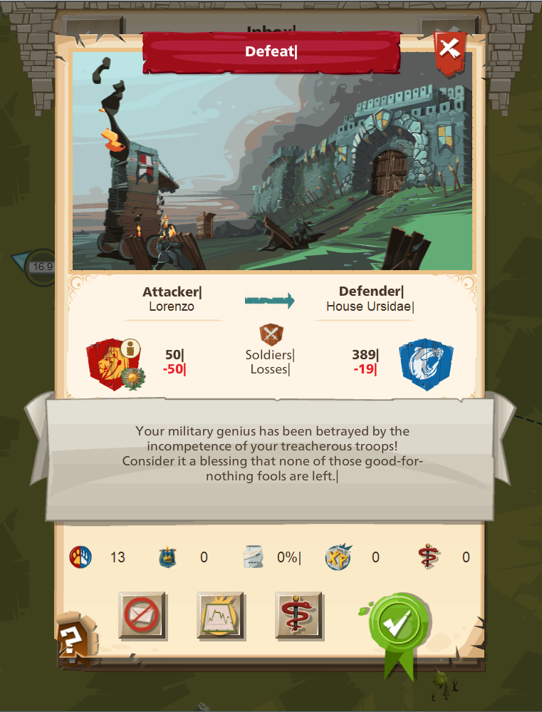 Die ersten beiden Werte hatte ich mir leider nicht aufgeschrieben, aber ich meine es war zwischen 80-90% Kampfkraft und 50-60%. Ihr findet im Anhang die Screenshots zu den drei Kämpfen.