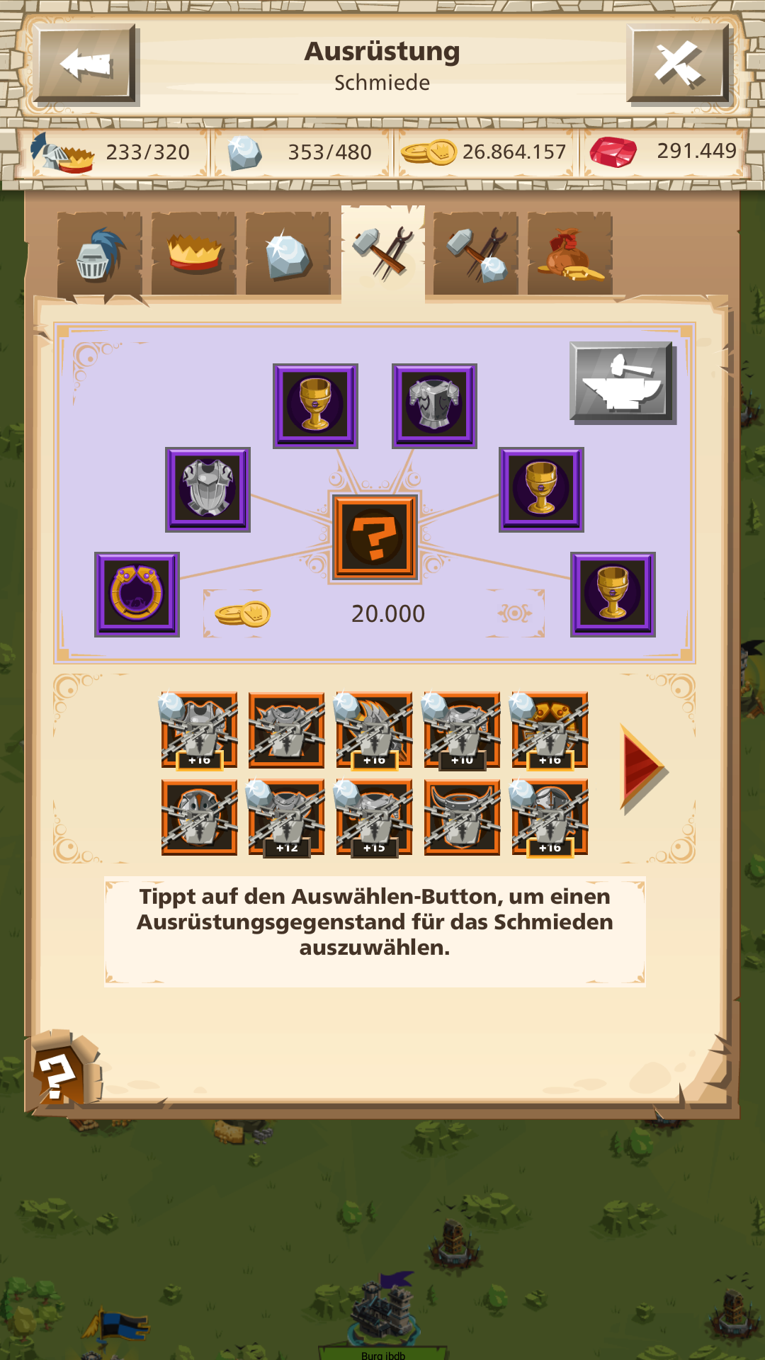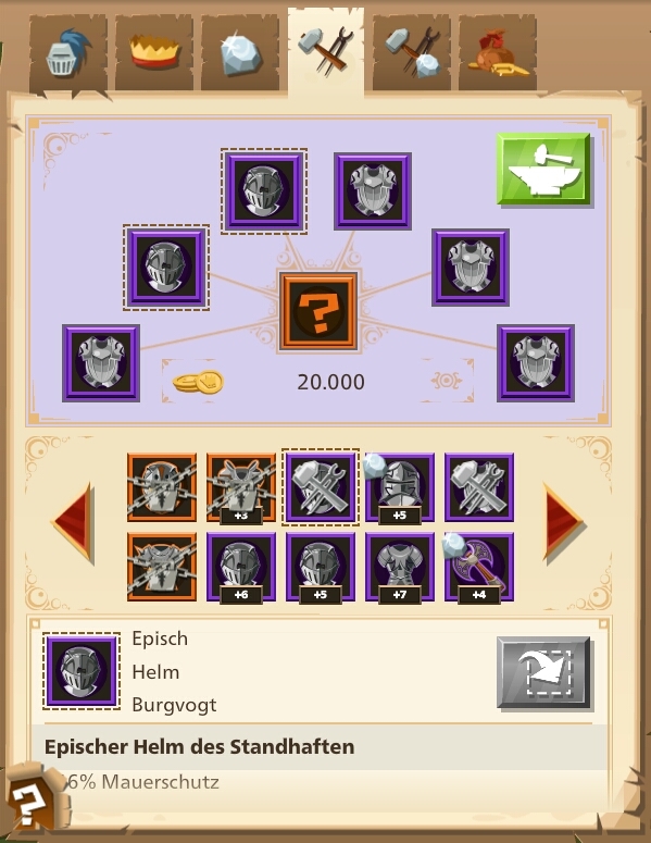 Dass man dieselbe Ausrüstung (2, 3, 4 oder 5 mal) in Kombination mit "wirklichen" Ausrüstungen zum Schmieden auswählen kann, ist auch möglich.