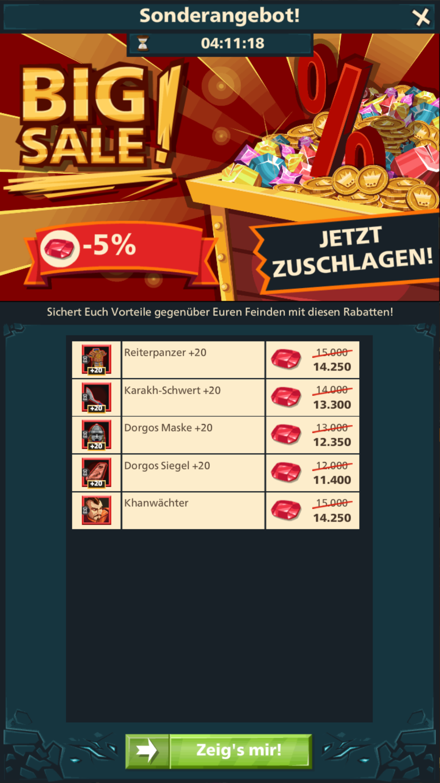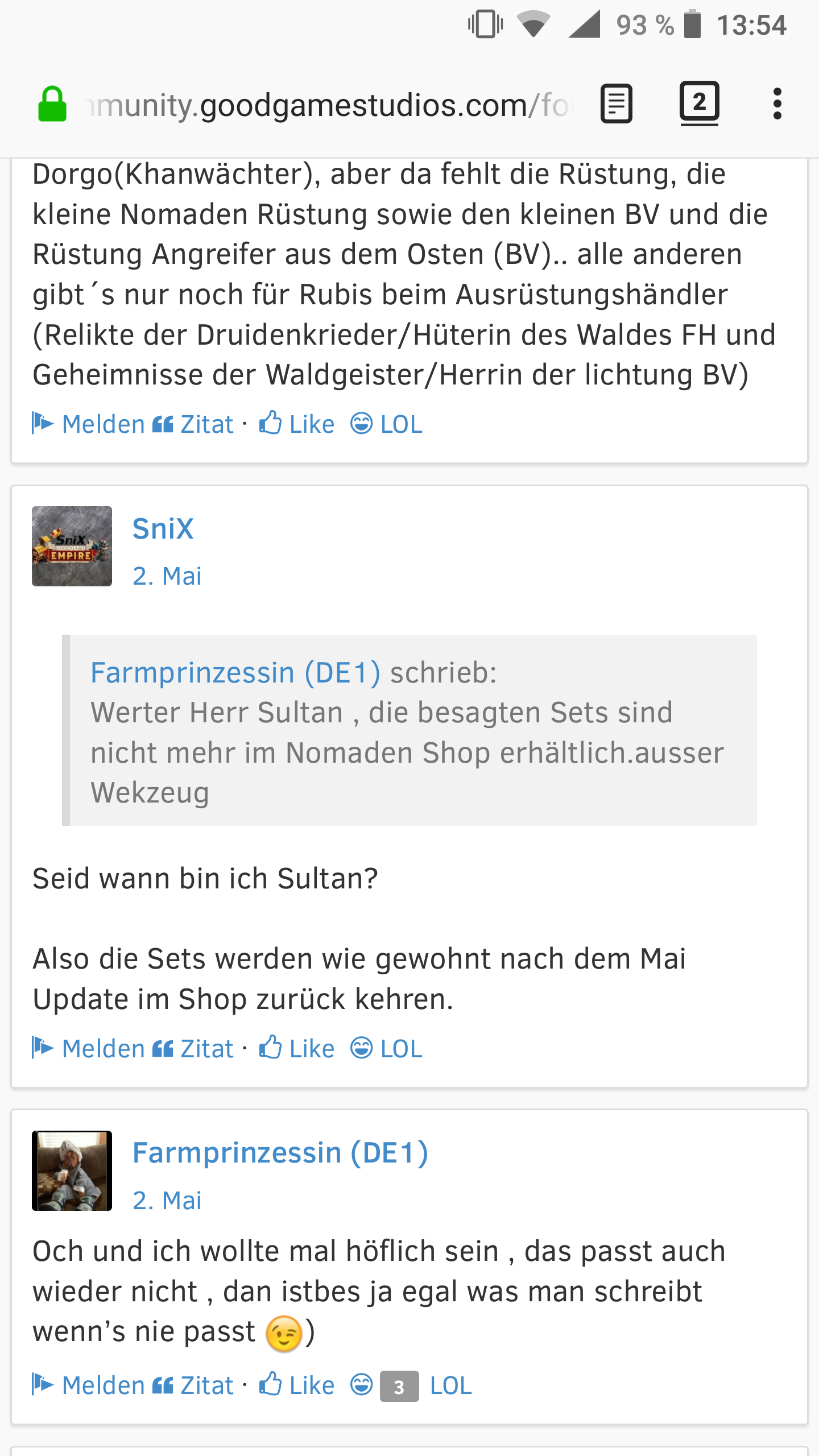 Es steht nirgendwo geschrieben bzw gibt es nur eine Garantie dafür wann ein Event endet. Habe mich selber such gewundert heute morgen aber ich denke es ist deshalb 1. Stunde eher zu Ende wegen der Auswertung von der top1000 bei der Schlacht um die Klinge des ZornsFarmprinzessin (DE1) schrieb:Guten Morgen, seit wann enden die Nomaden schon um 8 Uhr heute ? Es reicht euch von GGS wohl noch nicht das ihr die Behlohnungen gekürzt habt und die Punkte rausgesetzt habt , nein jetzt kürzt Uhr auch noch die Zeit um 1 Sttunde ! Die In Hamburg sollten mal von ihren hohen Ross runterkommen ,und mehr auf die Spieler Hören und achtgeben ,den wir Spieler bezahlen euer Gehalt.