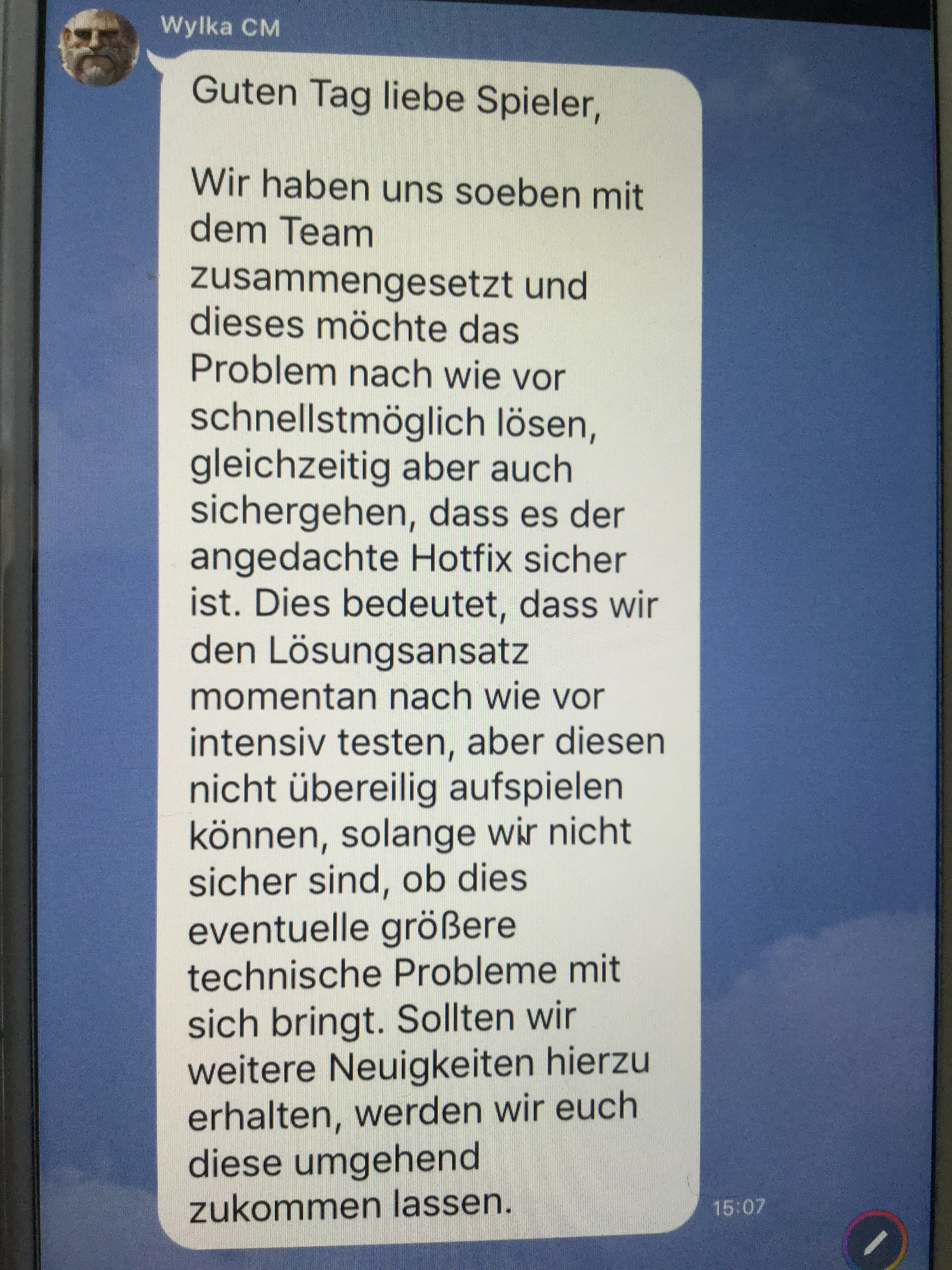 meine Königin hat soeben bei uns was aus dem Line Chat gepostet, wegen dem Fix für die Königsliga