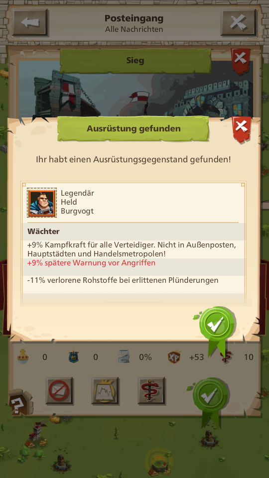 Habe bisher nur 7 legendäre harnische aber noch kein Burgvogt mein bestes War ein epischer welchen ich verkaufte.