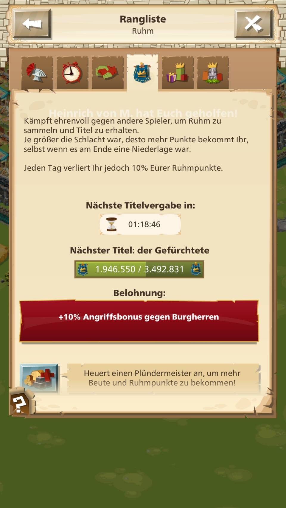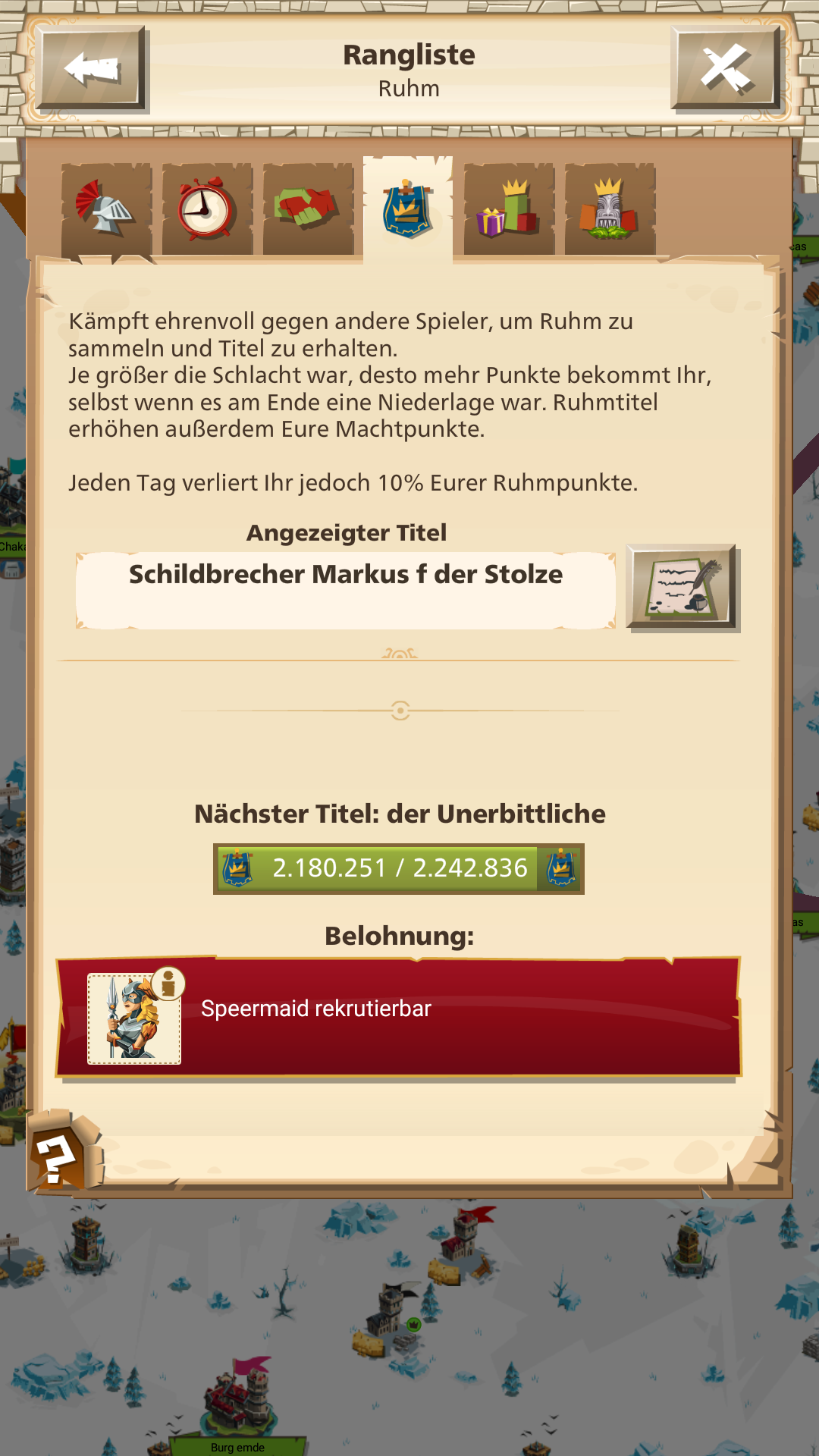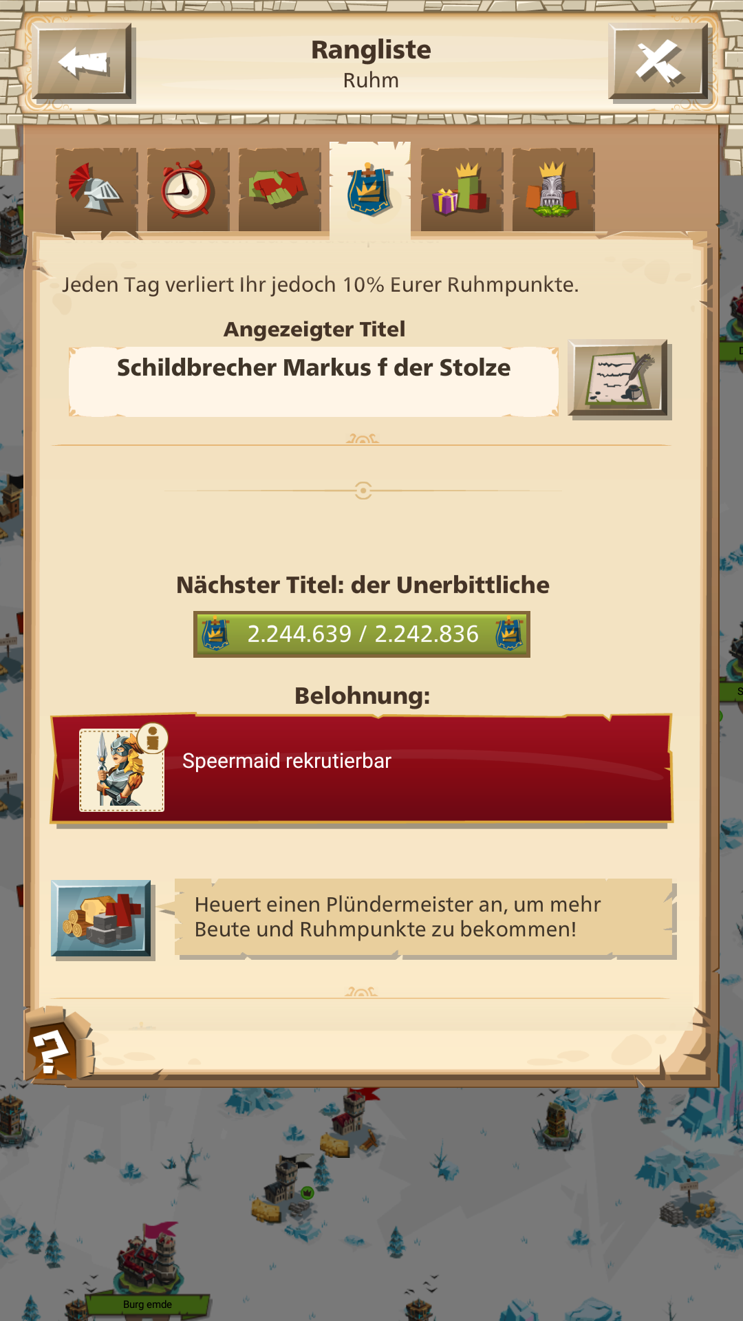 Wenn du nun auf die 2,2M, und drüber, kommen würdest, dann sollte der Timer dort aber stehen, damit du siehst wie lange du noch auf dem Ruhm bleiben musst um deinen Titel zu erhalten.