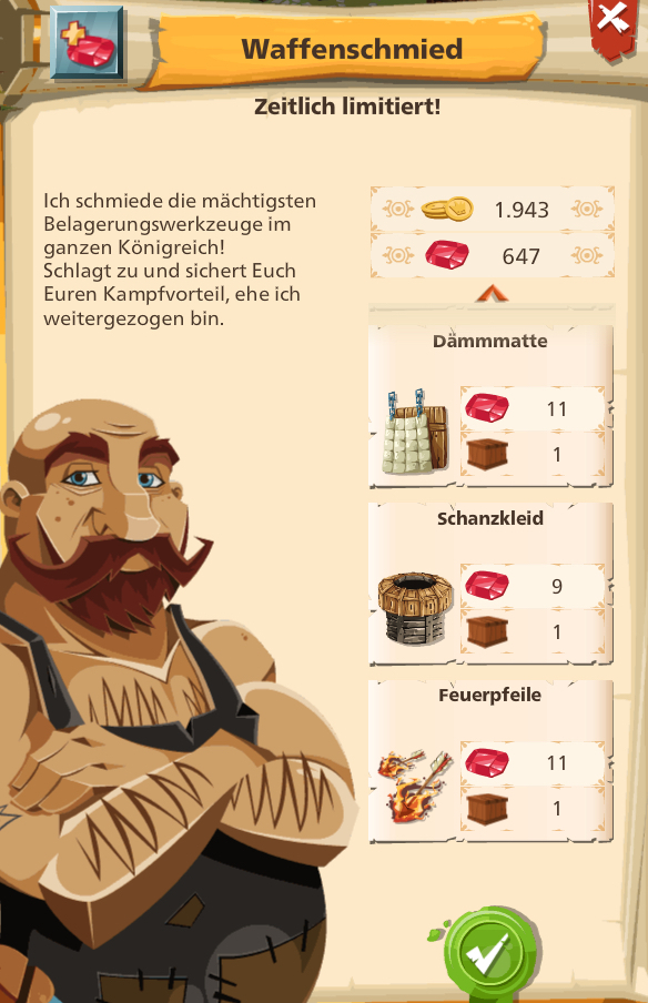 @Alpinolo : feuerpfeile kosten mehr rubine wie schatzkleid -sprich schlechteres werkzeug mehr kosten