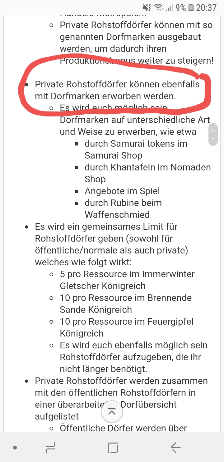 Aus der Erfahrung frag ich lieber vorher ob diese Dörfer echt und gekauft in keiner weise die nicht privaten negativ beeinflussen ....Wied das update dann reibungslos ohne Bugs laufen? Nicht das ich nen Dorf kaufe dafür aber 5 öffentliche freisetze usw . Man kennkennt ja alles von euch... .Das stationieren von off in diesen Dörfern Lehn ich persönlich ab weil dann keiner mehr sieht was der Gegner hat oder auch nicht und somit die Planung durcheinander kommt . Was noch zu erfragen wäre ...Man kann sie für dorfmarken kaufen. ..Was ist das woher bekomme ich das? Muss ich vieleicht erst Marken für runi kaufen um das ihr dann sagen könnt wenn eins verbugt verschwindet. ..Meckere nich das hast du ja für dorfmarken nicht rubis gekauft ... Mir richt das danach das demnächst quests oder events in den Welten gepusht werden um noch mehr sinnlos abzukassieren die Dörfer sind der Anfang.