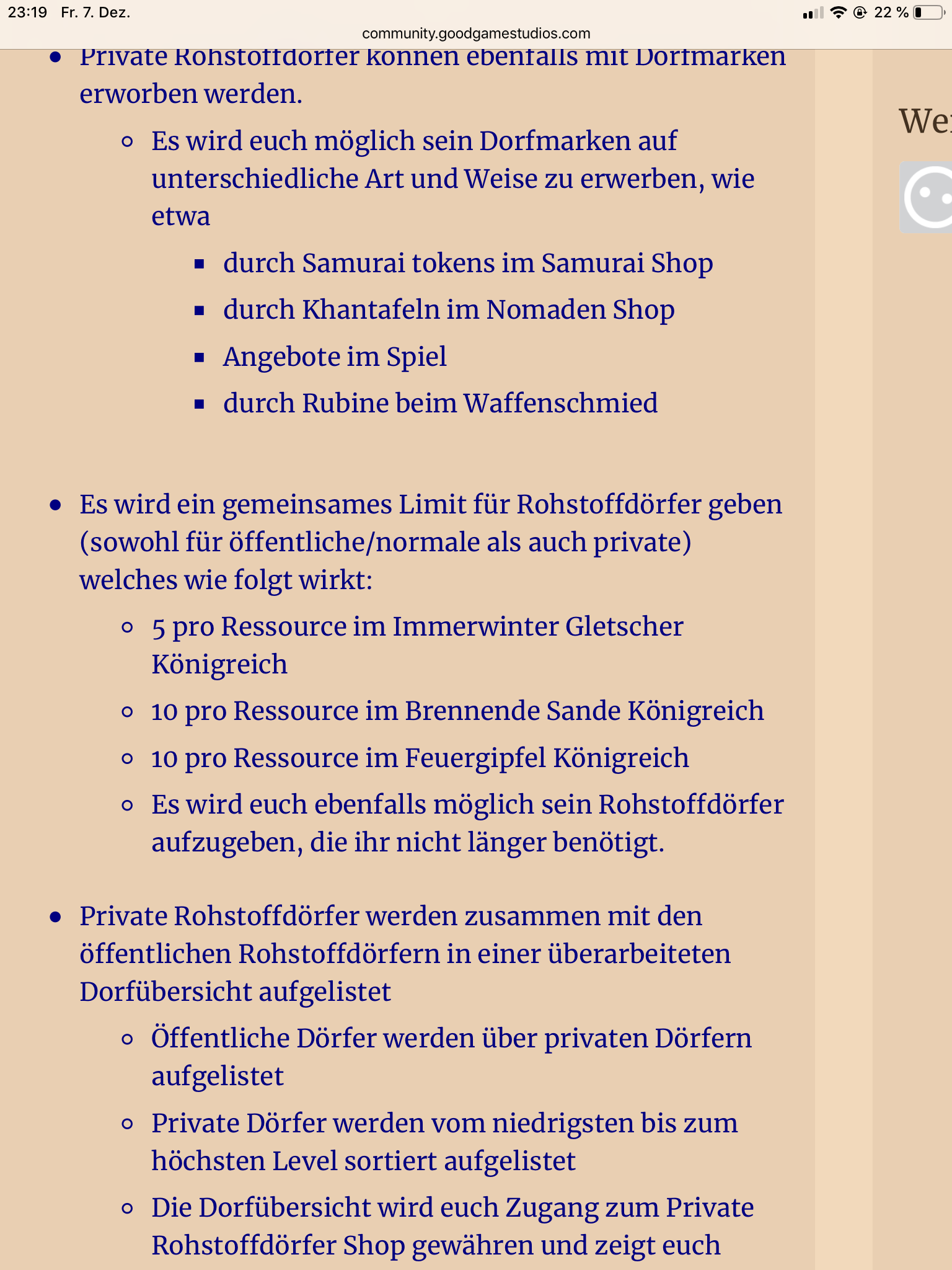 Nochmal: Es werden von eurem CM Ankündigungen geschrieben die falsche Zahlen enthalten . Ich glaube wir User haben ein Recht darauf Antworten zu bekommen. In diesem Fall Ich auf meine simple Frage zu den falschen Bonusprozenten der Sand bzw Feuerdörfer . Mir auch vollkommen egal wer von euch antwortet , ob cm oder mod.