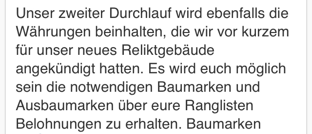 In den update notes für den Dezember ist es auf jeden Fall angekündigt. Und es ist ein ganz neues Gebäude mit einer neuen Währung die nur in den Außenwelten oder in der Königreich Liga erspielbar sind. Man kann das Gebäude nur auf dem Hauptaccount aufstellen. Mag keine fehlinformationen geben , aber laut meines Wissens ist dieses Gebäude überall auf dem Hauptaccount aufstellbar.xRok-Itx (DE2) schrieb:Dann eben hier: Was ist bitte das Reliktgebäude und wann hattet ihr das wo schon einmal angekündigt? Ist mir gänzlich neu. Was kann es und wo kann ich es bauen? Nur in der Außenwelt oder im Hauptaccount im grünen Imperium und Welten?