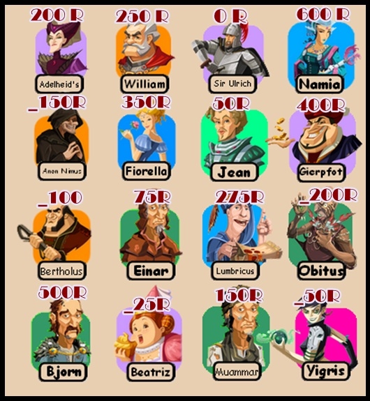 Aquí os dejo que cantidad de rubis poseía cada personaje del juego: