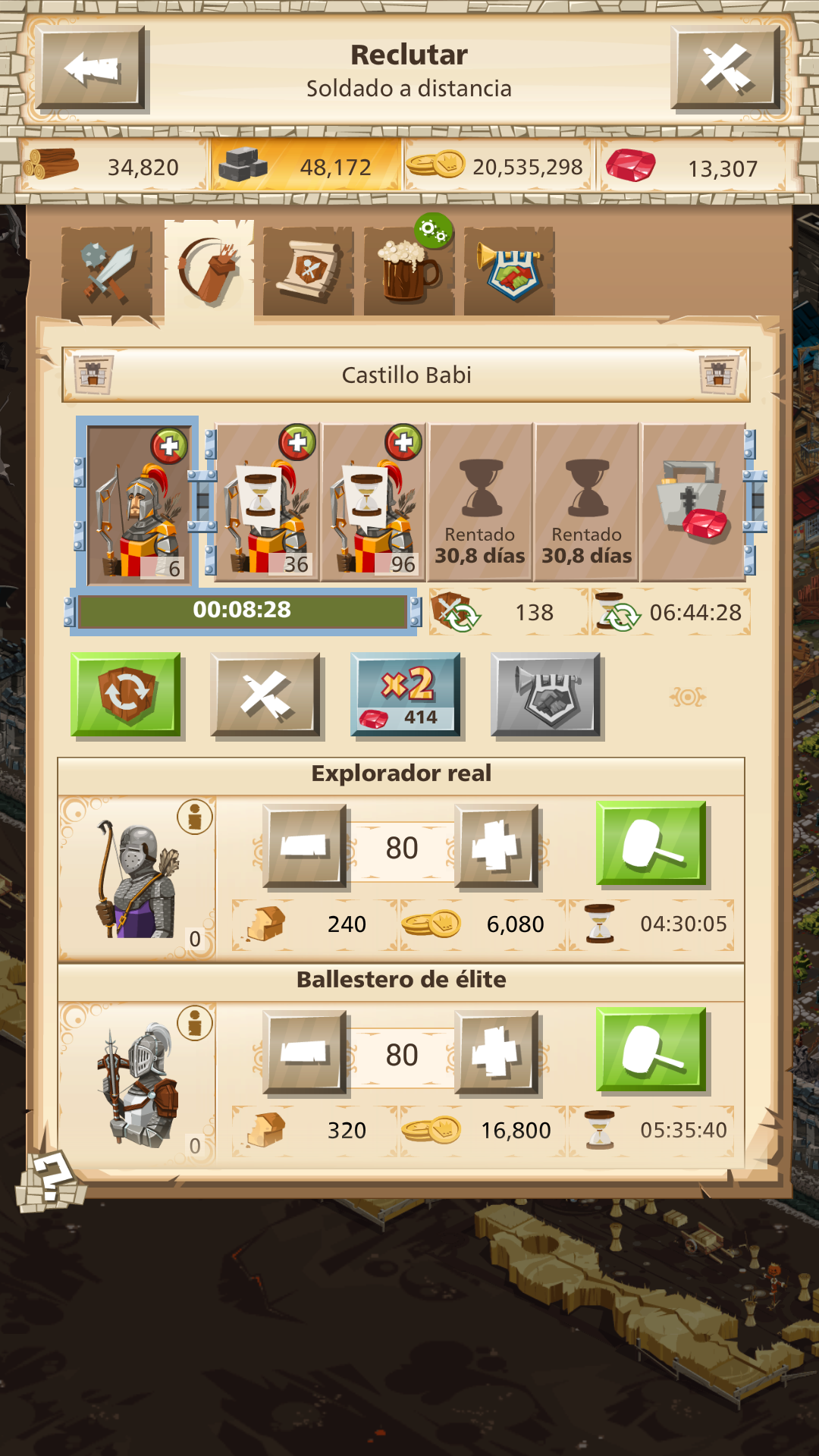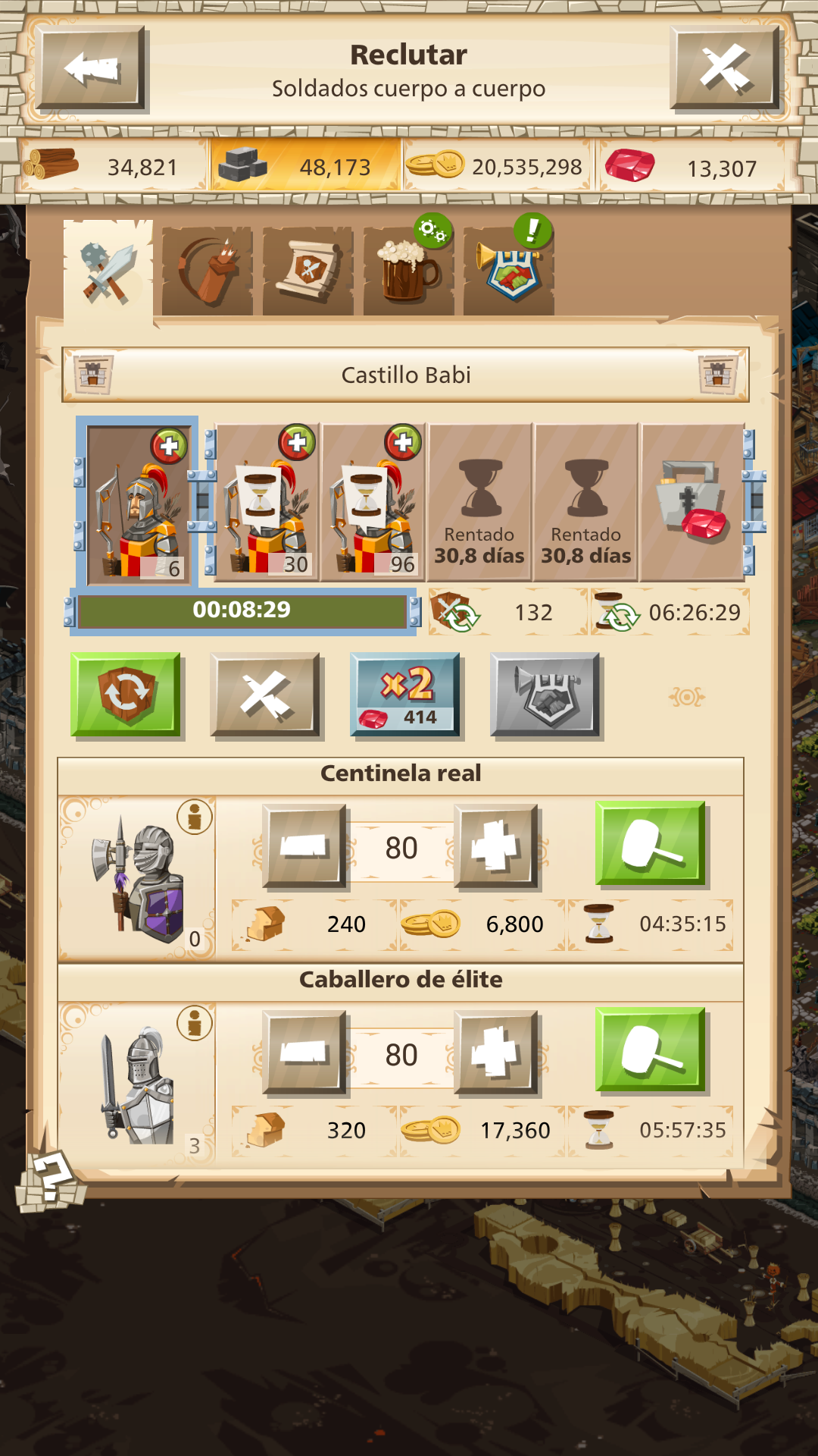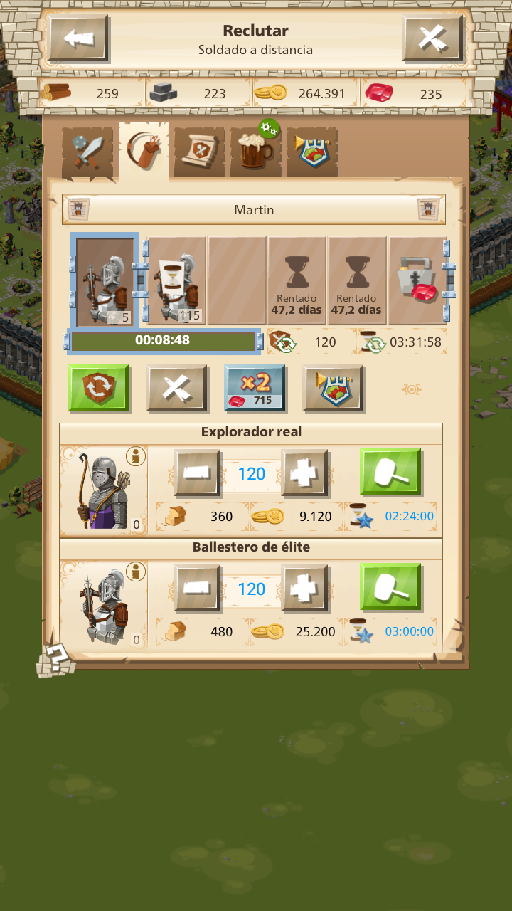 Hola @El Tirano (AR1),El Tirano (AR1) dijo:hay problemas con el tiempo de reclutamiento me dice q son 3hs para hacer 120 y cuando pongo a reclitarlos me tira mas de 3hs