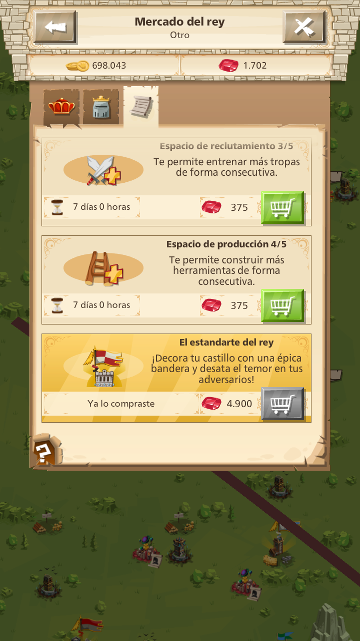 Hola: compre el estandarte del rey y no pasó nada.... Me pueden arreglar esto? Por q gaste 4900 rubíes y me cuesta ganarlos...