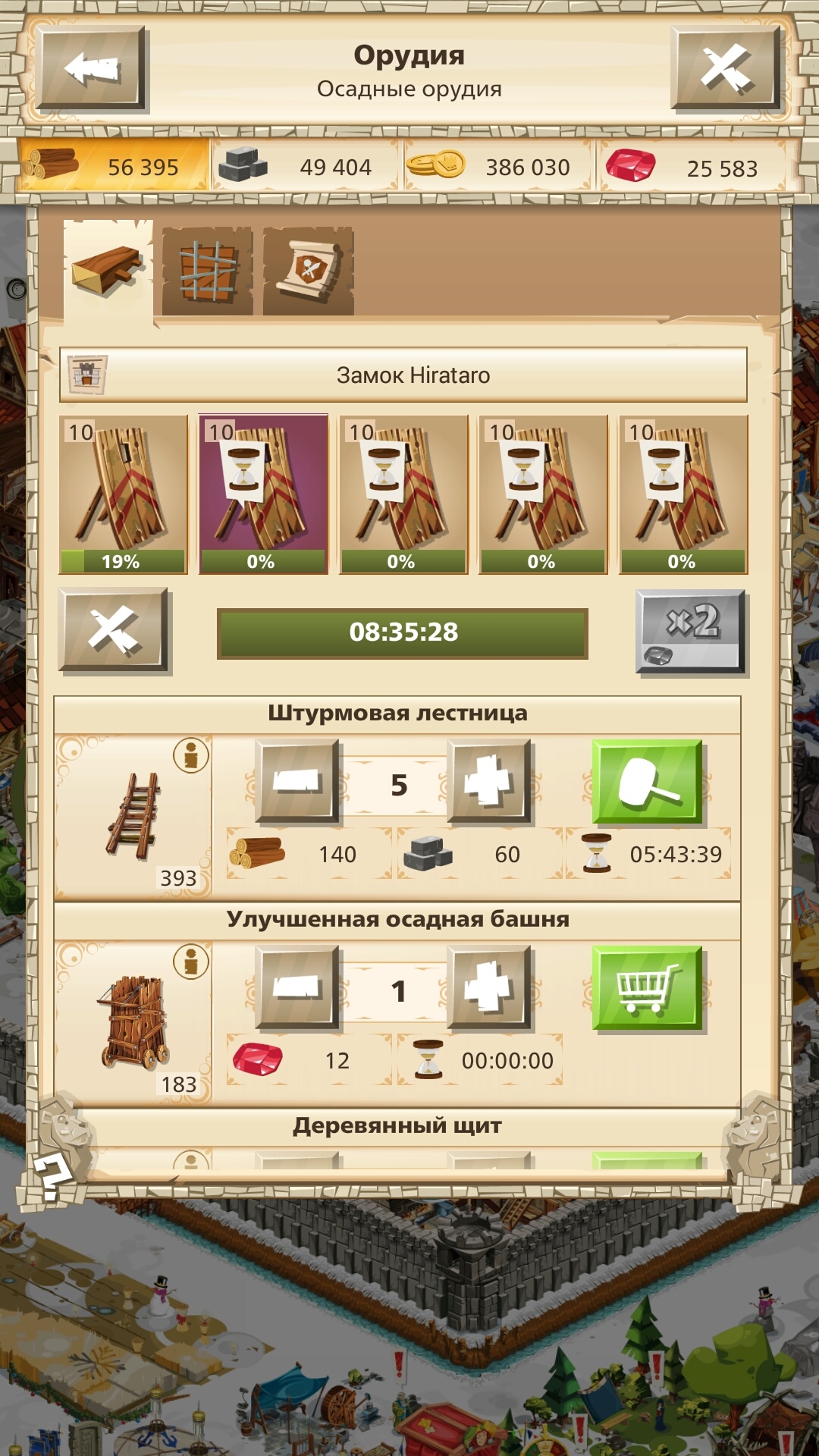 Возникла проблема. Деревянные щиты стали производиться более 8 часов, лестницы более 5 часов. В чем проблема, как решить? Игру переустановил, не помогло.